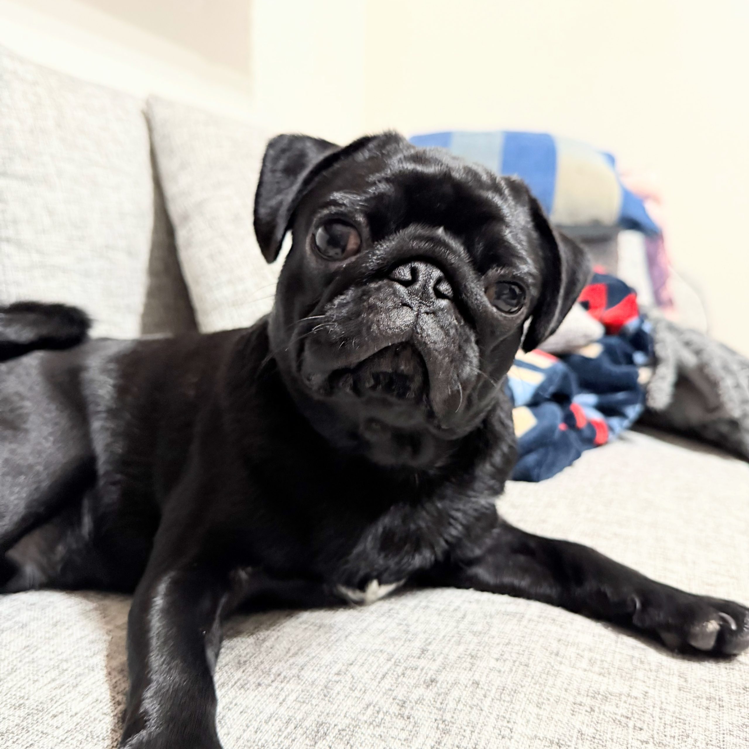 その日は、ロイと同じ誕生日のフォーンのパグちゃんが同じ市内にいるのをネットで見つけて会いに行くことから始まって、物静かな感じがロイに似てたんだけど「何かが違う」。